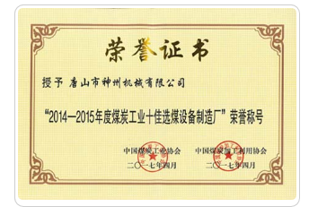 “2014-2015年度煤炭工业十佳选煤设备制造厂”荣誉称号