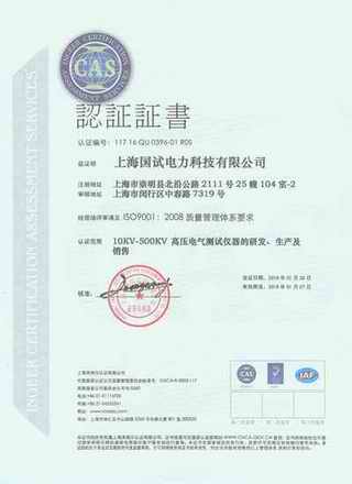 您好,欢迎访问上海国试电力科技有限公司网站。 技术支持:中国水电招标网,中国最具价值的利水电招标采购门户网站!