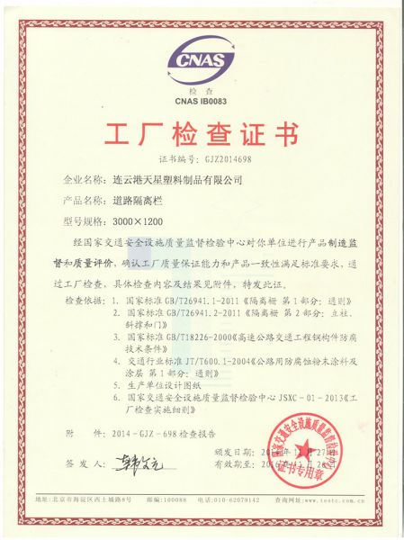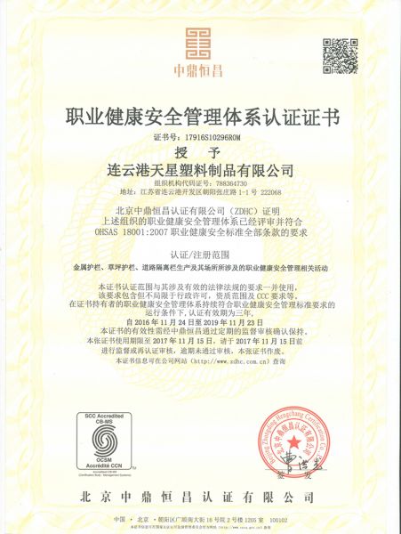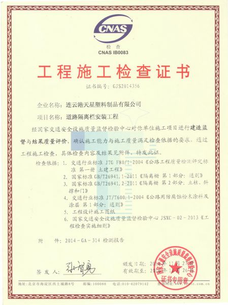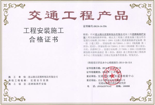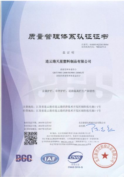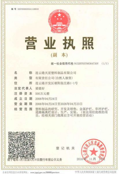 您好,欢迎访问天星护栏(连云港天星塑料制品有限公司)网站。 技术支持:中国水电招标网,中国最具价值的利水电招标采购门户网站!