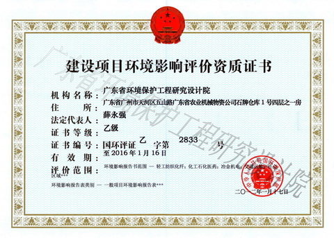 广东省环境工程装备总公司、广东省环境保护工程研究设计院(简称公司)成立于1981年,原为广东省环保局 (现广东省环境保护厅)的直属正处级单位。 2000年政企分离过程中脱离广东省环保局,归属广东省国资委所辖的广东省广业资产经营有限公司管理。现为其属下企业广东省广业环保产业集团有限公司的核心企业。 经过三十年来的发展,公司拥有100多名中、高级工程师和各相关专业的注册工程师,已建立起以“污水处理、固体废物处理处置、环境影响与评价、工程管理和运营”四个核心业务板块为龙头的相应专业技术团队,是一个集咨询、设计、科研、环境影响与评价、清洁生产、节能评估、投融资、建设项目管理、施工总承包、设备采购集成、机电安装及污染防治设施运营服务于一体、贯穿整个环保产业服务链的专业环境综合服务企业。 公司先后承...... [ 查看详情 ]