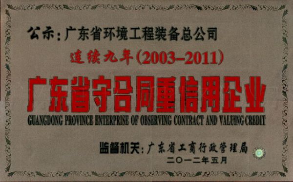 连续九年广东省守合同重信用企业