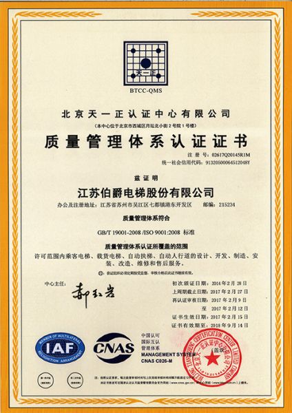 江苏伯爵电梯股份有限公司